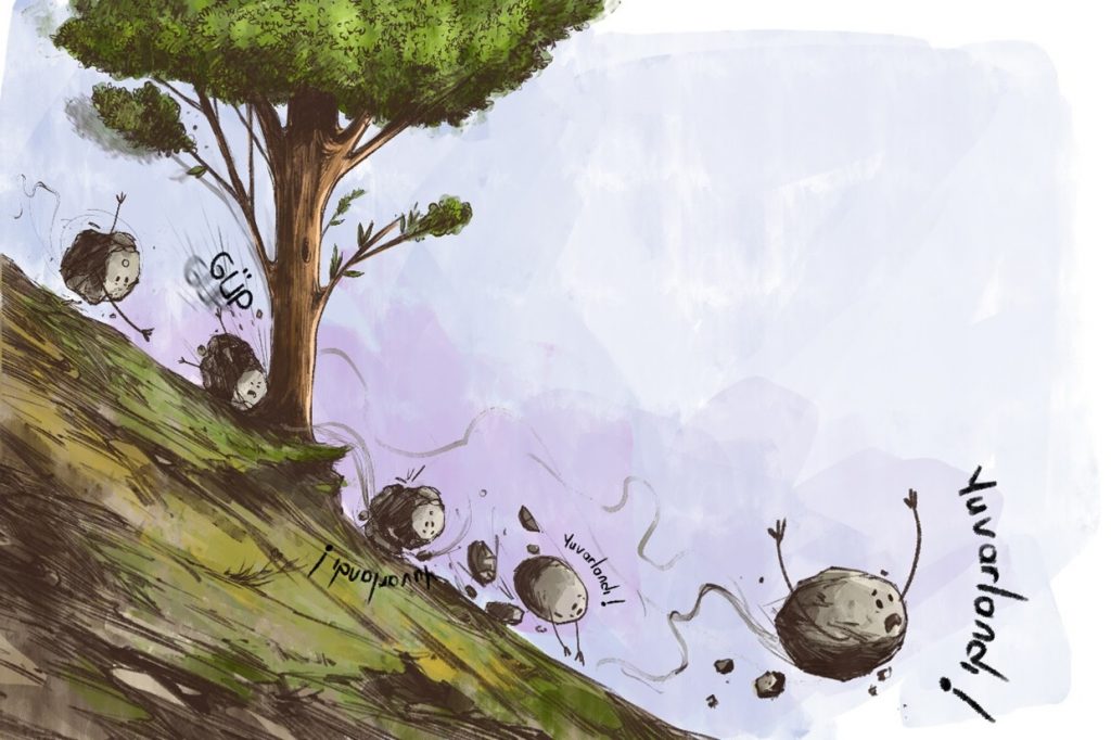 Kitabın çizimleri oldukça başarılı. Küçük Kaya parçasının kahraman olması elbette tabiatı mekânsal olarak güçlü kılıyor. Tabiat sonsuz bir alan. Konuşan ağaçlar, kediler, nehirler varken, küçücük bir kaya parçasının hikâyesine eşlik ediyoruz. Aslında tabiattaki ötekini konuşturmayı tercih etmişsiniz. Bu yaratıcılık sürecinden bahsedilir misiniz? Neden kaya?:)