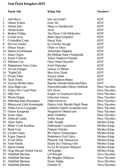 Ek-2025 Yılında Yayımlanan Öykü Kitapları