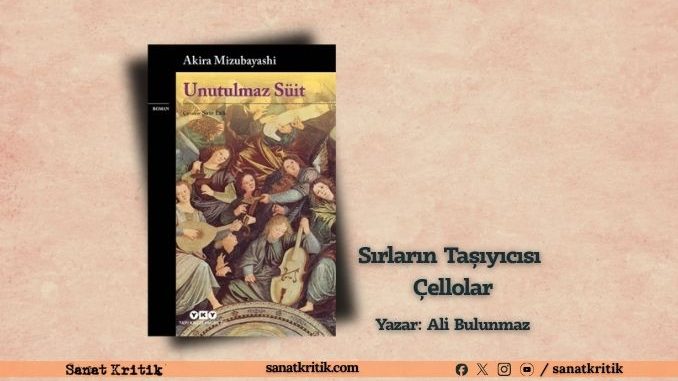 Mizubayashi, savaşla ve şiddetle birbirinden koparken müzikle yan yana gelen insanların, hem birbirine hem de müziğe duyduğu aşkın romanına imza atmış Unutulmaz Süit’te. Ömrü tüketen zamanın, hatıraları ve eserleri yarına taşıdığını hatırlatan Mizubayashi; Pamina ve Jacques, Hortense ve Ken ile diğer karakterler etrafında kurguladığı tarihsel romanda aşkların, buluşmaların, ayrılıkların ve öykülerine dair keşiflerin ön planda olduğu bir hikâye anlatıyor. Unutulmaz Süit’in hikâyesini büyük ve güçlü kılan ise tüm karakterleri birbirine bağlayan müzik ve geçmişten günümüze gelen, elden ele geçen çellolar. Buradan baktığımızda karakterlerin hayatları ile notlar, kişiler ve enstrümanlar bir bütün oluşturuyor. Hatta birbirinin tamamlayıcısı hâline geliyor. Diğer bir ifadeyle yaşanmışlıklar ve enstrümanlar, karakterlerin geçmişine dair sırların taşıyıcısı olurken arka planda dinmeyen ve anılarla bütünleşen melodiler tınlıyor.